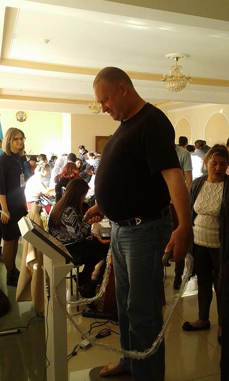Помимо сдачи донорской крови, населению было предложено пройти диагностику организма на соотношение мышечно-жировой ткани на анализаторе тела InBody 770 и диагностику остеопороза при помощи просвечивания ультразвуком. Также участники акции могли измерить свой точный рост и вес и сделать замечательное фото с Капелькой крови!